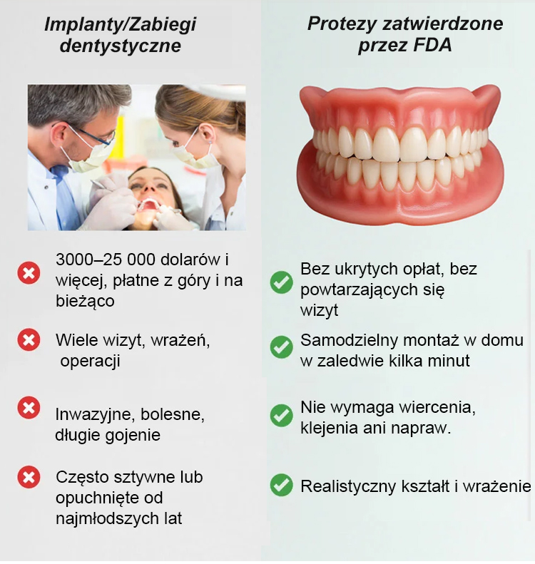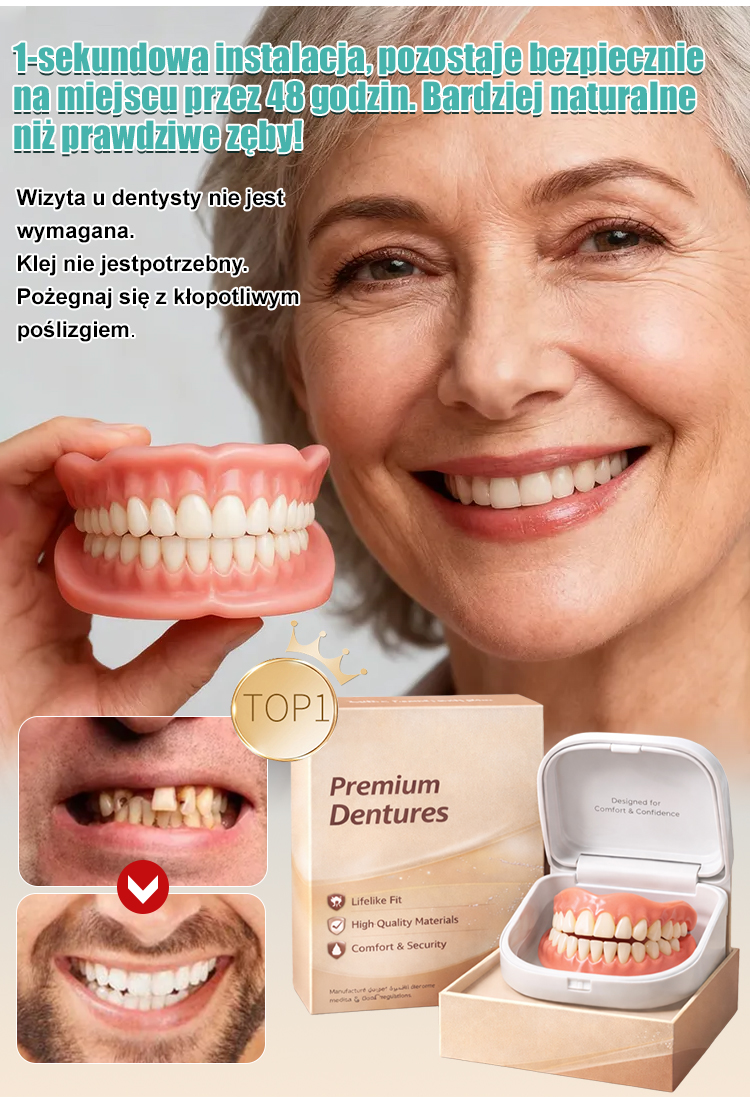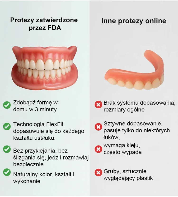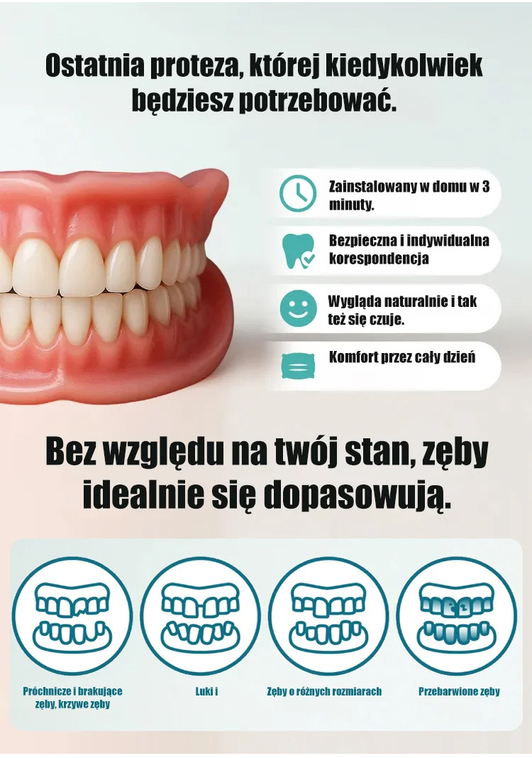 Bez kleju, dentysty czy umawiania wizyt! | Idealnie dopasowana proteza w 1 minutę [W zestawie przenośne etui stomatologiczne] Odzyskaj uśmiech dzięki protezie